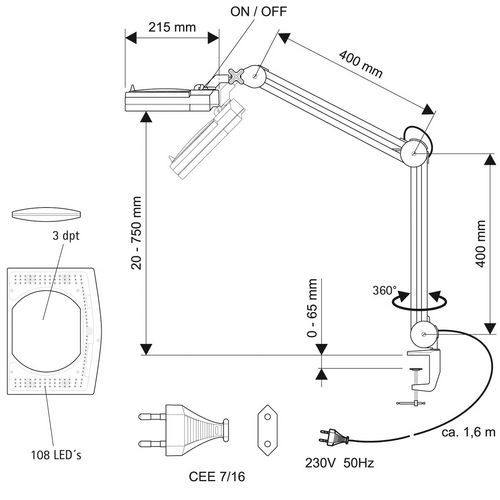 | Nombre del producto | Lámpara lupa LED rectangular, Flujo luminoso: 470 lm, Tipo de bombilla: Bombilla o módulo led, Aumento: 1.75x |