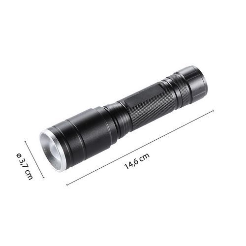 Contenido: 1 linterna LED recargable de 5 W con función de zoom, 1 batería recargable (batería de iones de litio 18650 3,7 V 1200 mAh), 1 cable micro USB de 50 cm. Velamp es un experto en linternas. Todos los valores siguientes son reales. La linterna está equipada con un LED de alta potencia de 5 W y 320 lúmenes.