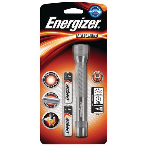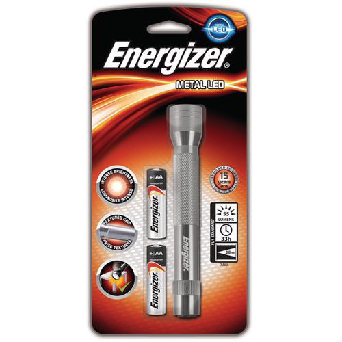| Nombre del producto | Linterna Metal LED 2AA, Flujo luminoso: 60 lm, Autonomía: 41 h, Alcance: 38 m, Robustez: sí, Tecnología: LED |