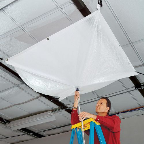 Detenga los daños devastadores causados por las filtraciones del techo y proteja a su personal, equipo e instalaciones. Se cuelga fácilmente en las zonas problemáticas para captar las fugas molestas y canalizarlas hacia un desagüe de suelo o un recipiente de recogida. Ideal para una intervención rápida y evitar el tiempo de inactividad tras una fuga en el techo, o como medida preventiva a largo plazo en zonas propensas a filtraciones. La lona impermeable está recubierta de vinilo para mayor resistencia y durabilidad, es resistente a perforaciones, rayos UV y moho, lo que garantiza una larga vida útil.