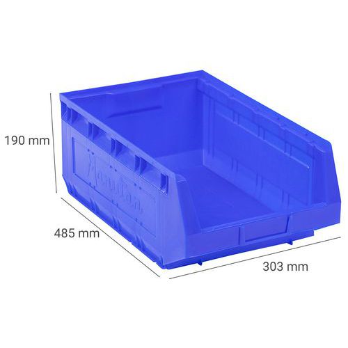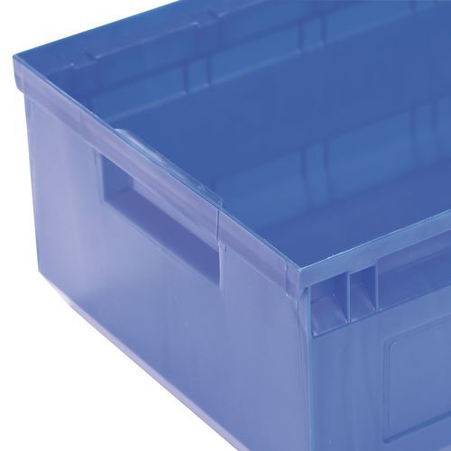 Rebordes con topes para una estabilidad del apilado. Gran robustez gracias a sus nervaduras laterales. Fondo plano y antideslizante para facilitar el agarre. Excelente agarre gracias al asa delantera. Cubeta plástica de alta resistencia a los choques. Fácil de identificar gracias al portaetiquetas. Fabricado en la UE
