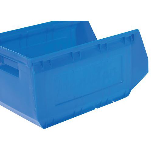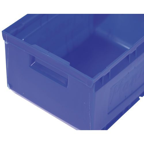 Rebordes con topes para una estabilidad del apilado. Gran robustez gracias a sus nervaduras laterales. Fondo plano y antideslizante para facilitar el agarre. Excelente agarre gracias al asa delantera. Cubeta plástica de alta resistencia a los choques. Fácil de identificar gracias al portaetiquetas. Fabricado en la UE