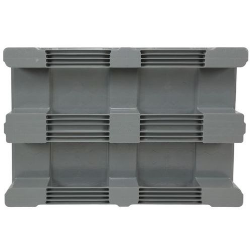 Estructura interna de nido de abeja para una solidez extrema. Diseño con borde antideslizante para evitar la caída de mercancías. Unión de la base y la suela para garantizar una gran capacidad de carga. Fabricado con polietileno compatible con los productos alimentarios.