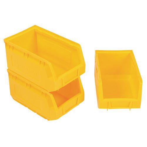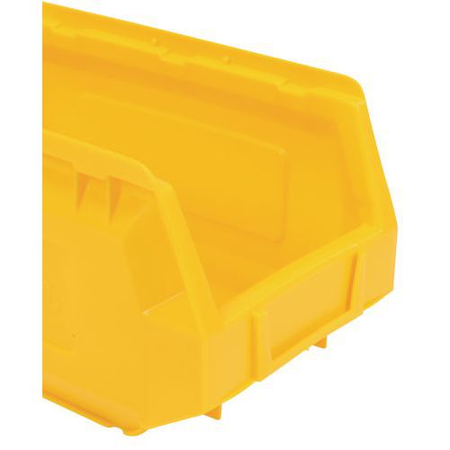 Rebordes con topes para una estabilidad del apilado. Gran robustez gracias a sus nervaduras laterales. Fondo plano y antideslizante para facilitar el agarre. Excelente agarre gracias al asa delantera. Cubeta plástica de alta resistencia a los choques. Fácil de identificar gracias al portaetiquetas. Fabricado en la UE