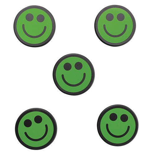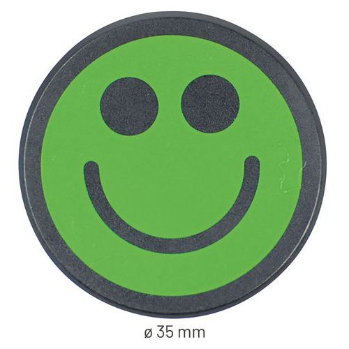 Lote de 5 placas magnéticas Smiley, Color: Verde, Ø: 35 mm, Lean Management: sí Lote de 5 placas magnéticas Smiley, Color: Verde, Ø: 35 mm, Lean Management: sí