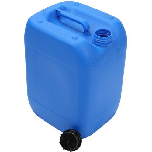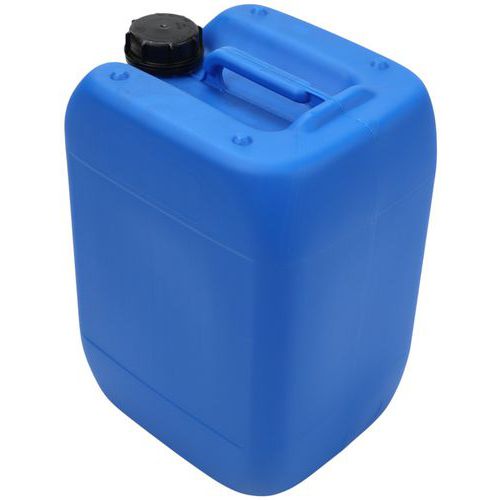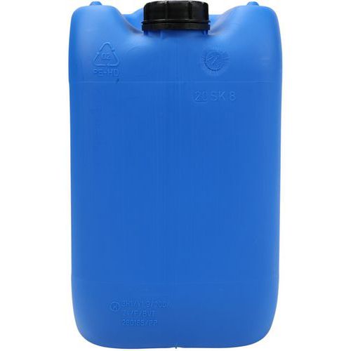 Garrafa de plástico homologada para el transporte de mercancías. Alta resistencia a caídas, a la presión hidráulica y al apilado. Envase perfectamente estanco: resultado de la prueba de presión de aire. Garrafa de transporte y conservación de gran comodidad con asa superior. Gran apertura con tapón de rosca abatible e indicador de apertura.