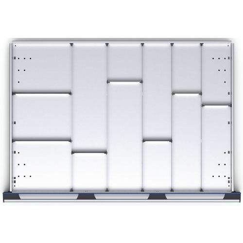 Lote de separadores sólidos para dividir el cajón de manera flexible. Cree una compartimentación personalizada con la ayuda de separadores longitudinales y transversales desmontables.