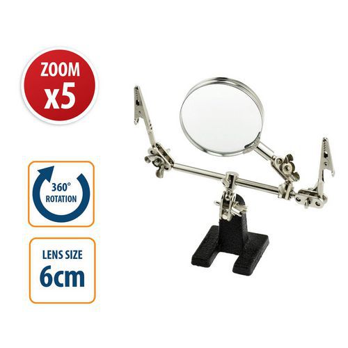 Lupa con soporte y pinza ajustable, Aumento: 5x