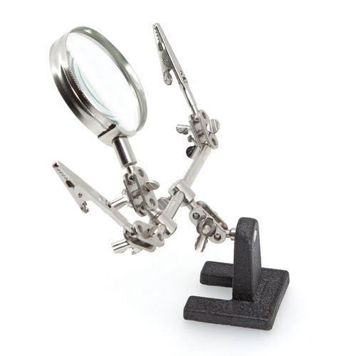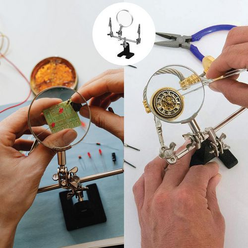 Con brazos móviles y pinzas de cocodrilo que pueden ajustarse a infinidad de ángulos para trabajar con las manos libres.
