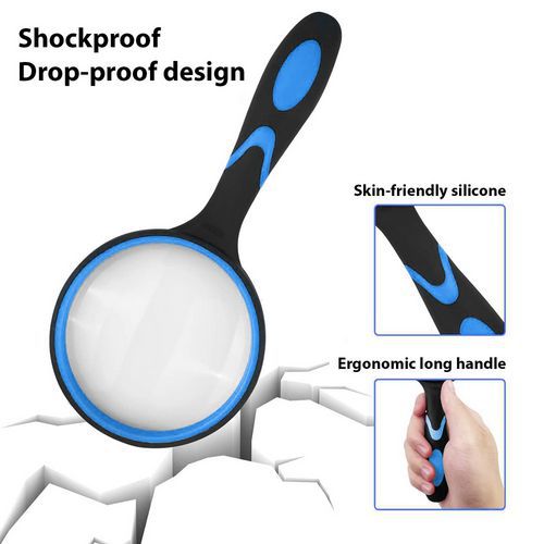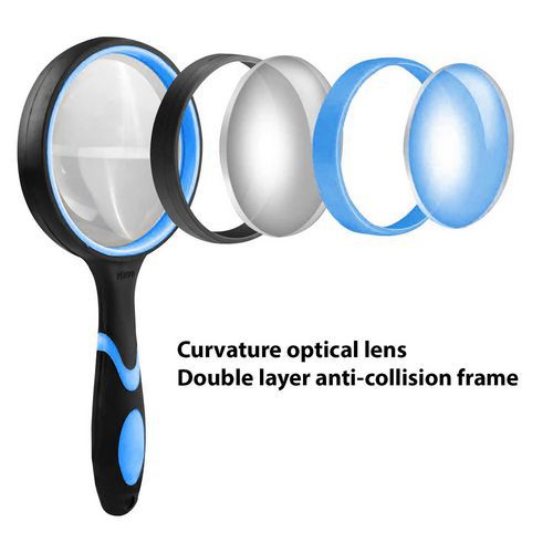 Objetivo grande, campo de visión amplio: el objetivo gigante de 100 mm ofrece un campo de visión más amplio que los objetivos convencionales, lo que permite ver más contenido y reducir la fatiga ocular. Ampliación rural de 6 aumentos, lente de vidrio de calidad óptica gruesa y transparente, alta precisión, resistente al desgaste y a los arañazos. Ofrece imágenes excelentes sin distorsión. El mango está hecho de goma antideslizante: es agradable al tacto, suave y cómodo. Además, la lente está bien equilibrada para evitar la fatiga de la muñeca. La estructura reforzada garantiza una excelente estabilidad de la lente: sin temblores ni movimientos.