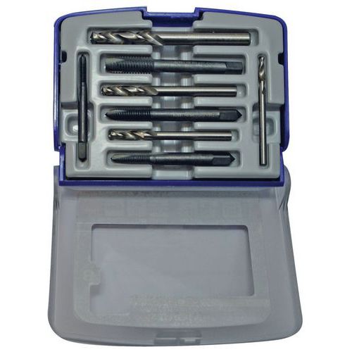 | Nombre del producto | Maletín de brocas HSS y machos de roscar Gun, Nº de piezas: 8, Material: Acero, Tipo de soporte: Plástico |