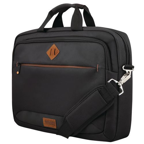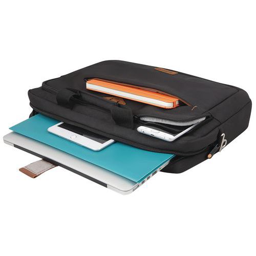 Maletín para ordenador portátil con compartimento específico para tabletas de hasta 10,5 pulg. Práctico y seguro con cinta de sujeción para el compartimento del portátil. También está equipado con un compartimento para diversos accesorios y documentos. Cómodas asas reforzadas y bolsillos delanteros y traseros con cremallera.