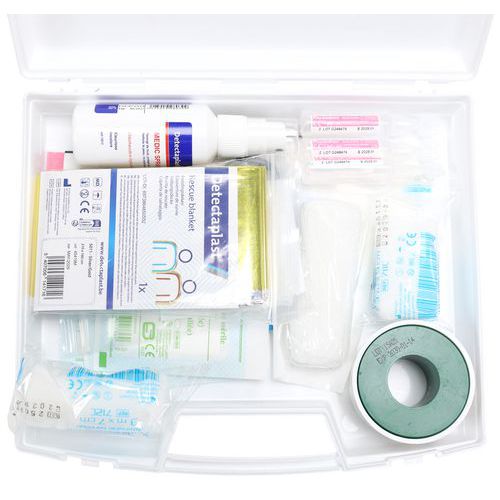 | Nombre del producto | Maletín de primeros auxilios multirriesgo universal para 1/5 personas, Color: Blanco, Ancho: 205 mm |