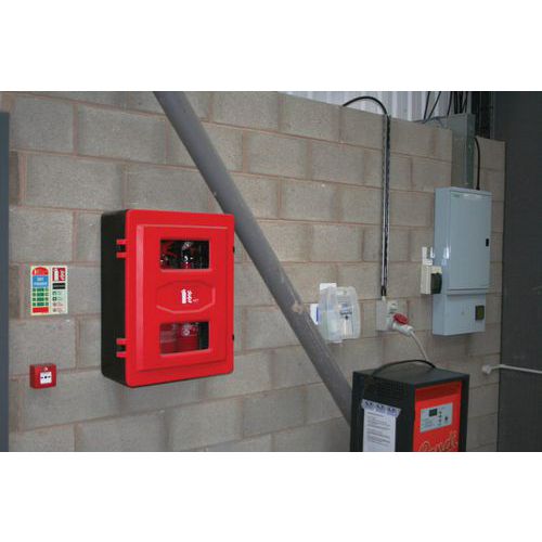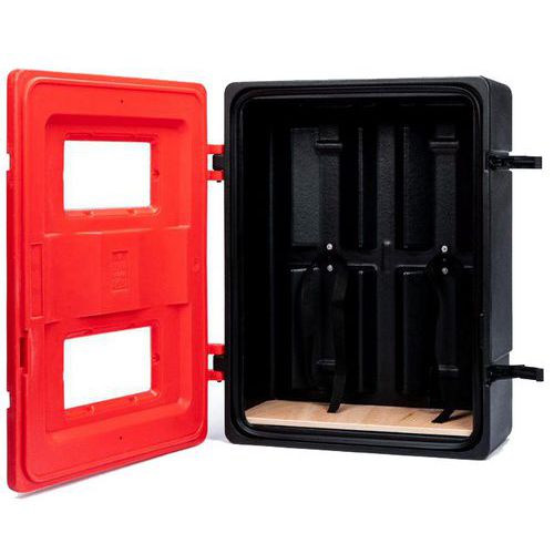 | Nombre del producto | Maletín para 2 extintores, Material: Polietileno de alta densidad, Color: Rojo/negro |