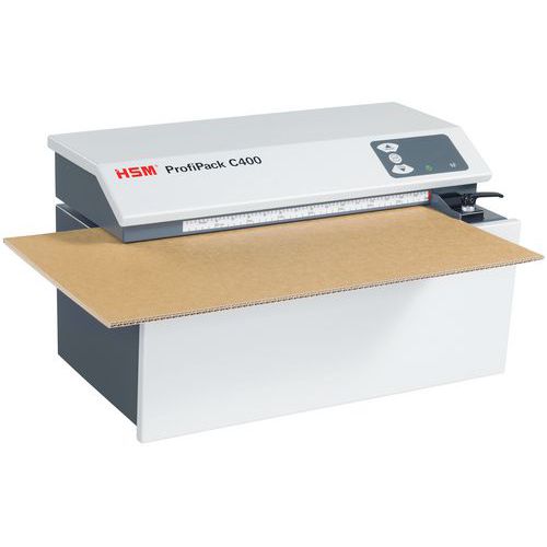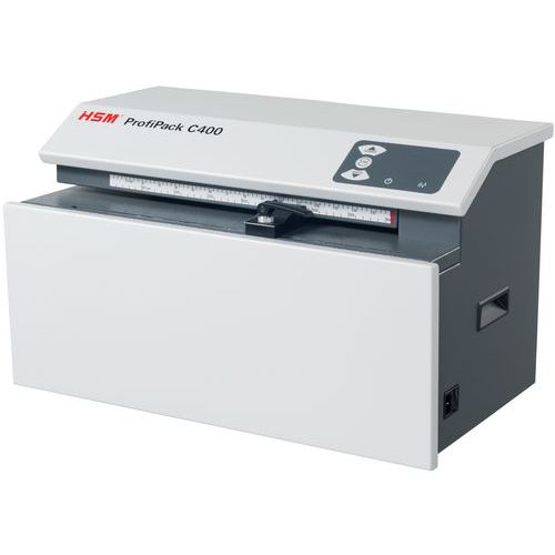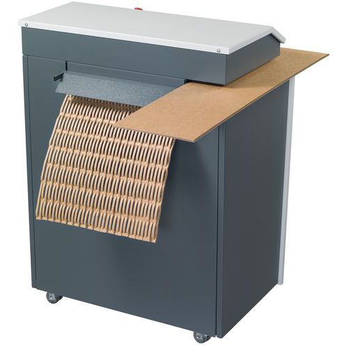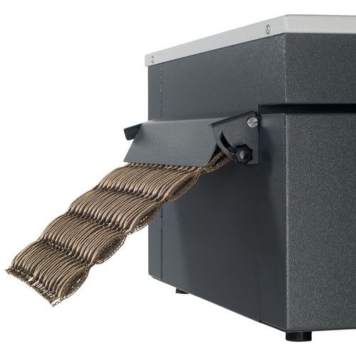 La máquina de relleno y acolchado de embalaje permite convertir en un solo paso el cartón usado en material de relleno y acolchado para embalaje. Se puede utilizar de forma móvil y flexible o como dispositivo de sobremesa compacto.