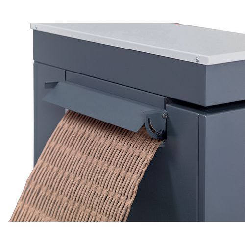 La máquina de relleno y acolchado de embalaje permite convertir en un solo paso el cartón usado en material de relleno y acolchado para embalaje. Se puede utilizar de forma móvil y flexible o como dispositivo de sobremesa compacto.