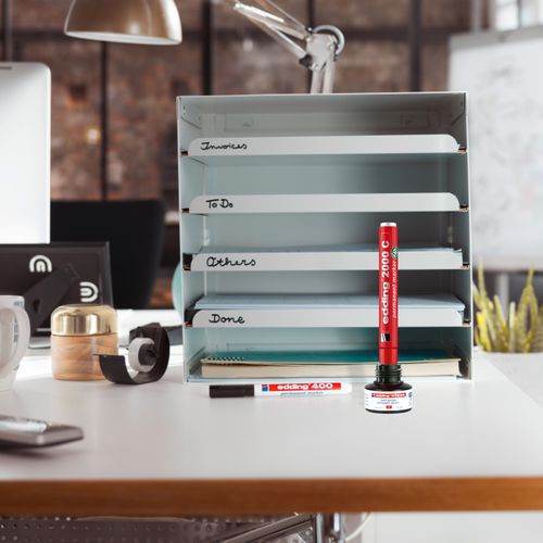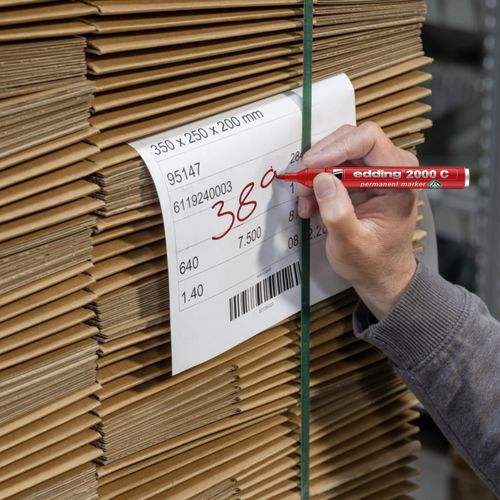 Marcador Edding 2000C y 2200C, Tinta color: Rojo, Punta forma: Ojival, Material cuerpo: Aluminio Marcador Edding 2000C y 2200C, Tinta color: Rojo, Punta forma: Ojival, Material cuerpo: Aluminio