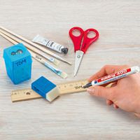 Marcador permanente de punta fina con escaso olor, para escribir sobre casi cualquier material: papel, cartón, metal, vidrio, etc. Resistente al agua, a la luz y a la abrasión. Tinta indeleble no tóxica, sin xileno ni tolueno. Secado rápido.