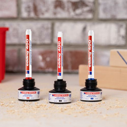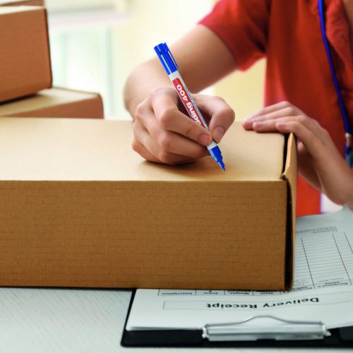 Marcador permanente de punta fina con escaso olor, para escribir sobre casi cualquier material: papel, cartón, metal, vidrio, etc. Resistente al agua, a la luz y a la abrasión. Tinta indeleble no tóxica, sin xileno ni tolueno. Secado rápido. Fabricado en Alemania