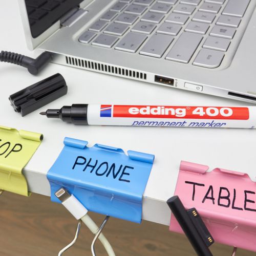 Marcador permanente Edding 400, Tinta color: Negro, Tipo de punta: Fina, Punta forma: Ojival Marcador permanente Edding 400, Tinta color: Negro, Tipo de punta: Fina, Punta forma: Ojival