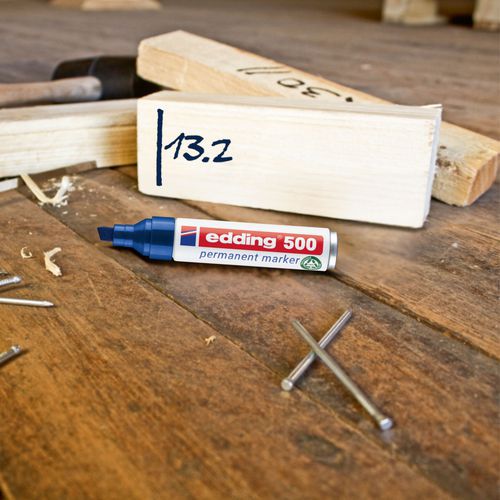 Marcador permanente Edding 500, Tinta color: Azul, Punta forma: Bisel, Tramo anchura: 2-7 mm Marcador permanente Edding 500, Tinta color: Azul, Punta forma: Bisel, Tramo anchura: 2-7 mm