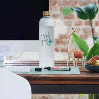 Marcador permanente ecológico para marcar y escribir sobre casi todo tipo de material: metal, plástico, vidrio, etc.  Diseño ecológico fácilmente identificable.  Resistente al agua y a la luz.  Tinta de bajo olor a base de alcohol, sin adición de xileno y tolueno.  Secado rápido.   Escriba, marque y dibuje.