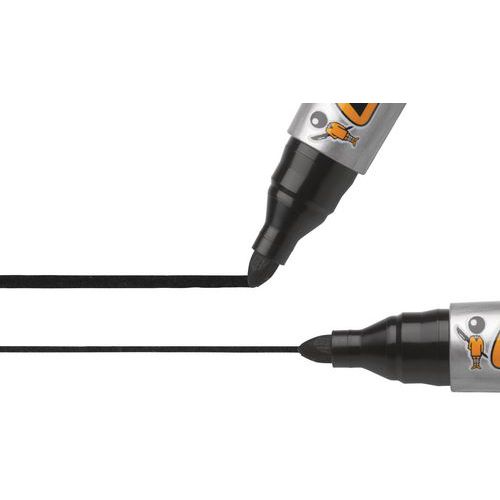 El marcador permanente BIC Marking 2000 ECOlutions está dotado de una punta de ojiva resistente para un trazado limpio y grueso. Indeleble, se utiliza en casi todas las superficies: papel, cartón, plástico, vidrio, metal, CD. La tinta se seca rápidamente, su olor es bajo y es resistente a la luz. Fabricado en Francia con un 52 % de material reciclado.