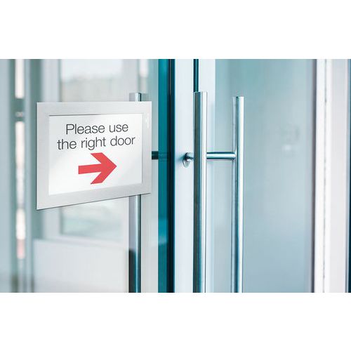 Marco presentac. Duraframe® adhesivo para superf. lisa Gracias a su parte posterior adhesiva reposicionable, el marco se pega y se separa en cualquier superficie lisa y rígida, como paredes, puertas, etc. Legibilidad a ambos lados del documento en superficies de cristal. Actualización rápida y sencilla, sujeción de los documentos gracias al marco magnético. Utilización en formato vertical u horizontal. Solución ideal para presentar información general y obligatoria de la empresa, promociones, normativas internas, notas informativas, etc.