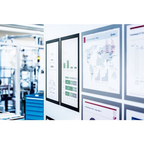 Marco para mostrar documentos (notas informativas, normativas, programas, instrucciones de seguridad, etc.) Se fija a las superficies metálicas (puertas, pizarras blancas, taquillas…). Actualización de documentos rápida y sencilla: el marco magnético facilita la inserción lateral del documento y su perfecta colocación. El marco se puede cambiar de posición según sus necesidades. Cambie fácilmente de sitio sus presentaciones. Se utiliza en formato vertical u horizontal. Cambie fácilmente de sitio sus presentaciones. Se utiliza en formato vertical u horizontal. Fabricado en la UE Garantía al cliente : 2 años