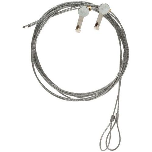 Kit 1 : 2 x cables de acero de 1,5 m (se puede ajustar a la longitud deseada). 2 x ganchos de suspensión. Kit 2 : 2 x cables en espiral de 30 cm (gran capacidad de estiramiento) con ganchos. 2 x platinas de fijación adhesiva para ganchos.
