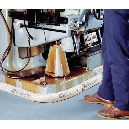 En forma de calcetines maleables que pueden meterse en las esquinas y en la base de las máquinas para absorber las fugas. Absorbe los líquidos industriales más frecuentes: agua, aceites, disolventes, líquidos de refrigeración y mucho más. Gran capacidad de absorción incluso tras saturarse. Sobre de polipropileno para una resistencia ante los desgarros máxima. Mecha gris para disimular las manchas. Para el mantenimiento diario