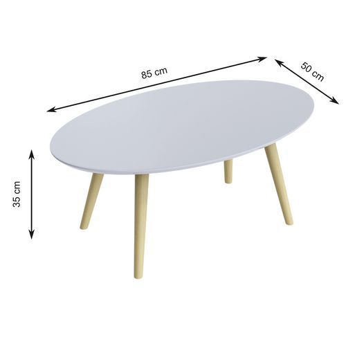 Mesa baja Scandi, Tipo de patas: 4 patas, Ancho: 85 cm, Forma: Oval, Tablero color: Blanco Mesa baja Scandi, Tipo de patas: 4 patas, Ancho: 85 cm, Forma: Oval, Tablero color: Blanco
