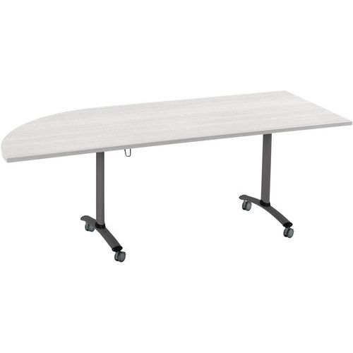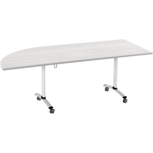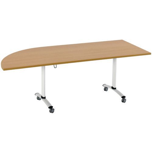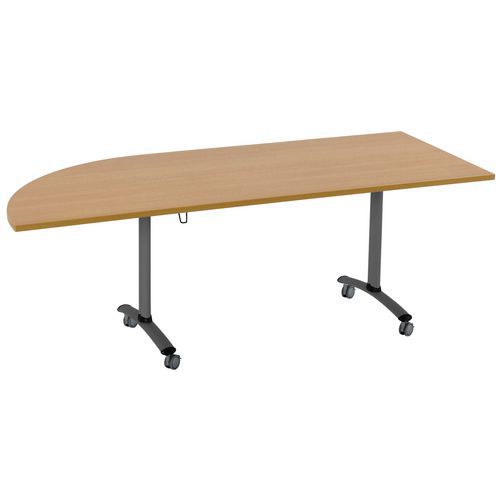 Mesa de reuniones con ángulo a la izquierda plegable con eje y tablero giratorio que ahorra espacio de almacenamiento. Bloqueo automático del tablero en posición de trabajo (horizontal) y vertical (almacenamiento). Sistema de conexión rápida entre los tableros mediante tornillo de mariposa. Provista de 4 ruedas de Ø 75 mm con freno. Mesa de reuniones con ángulo a la izquierda plegable con eje y tablero giratorio que ahorra espacio de almacenamiento. Bloqueo automático del tablero en posición de trabajo (horizontal) y vertical (almacenamiento). Sistema de conexión rápida entre los tableros mediante tornillo de mariposa. Provista de 4 ruedas de Ø 75 mm con freno.