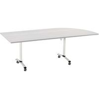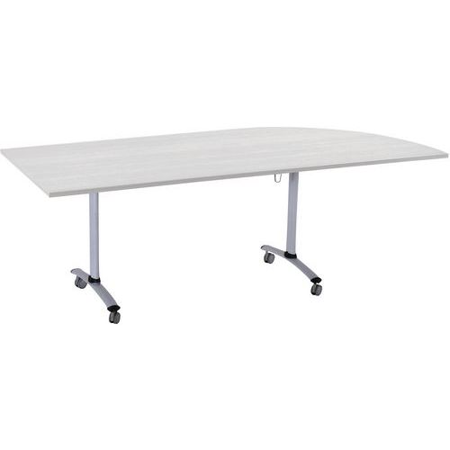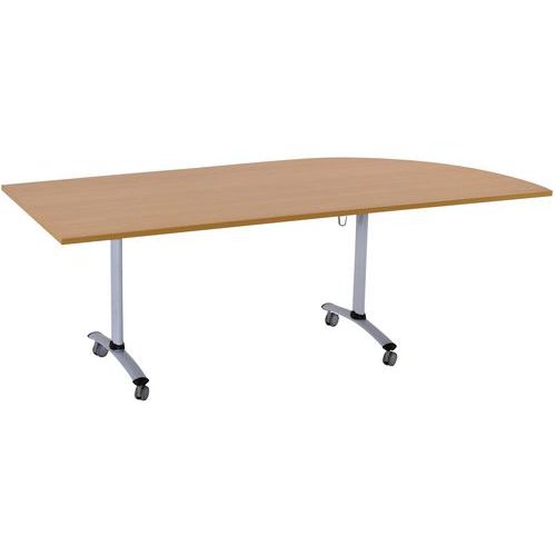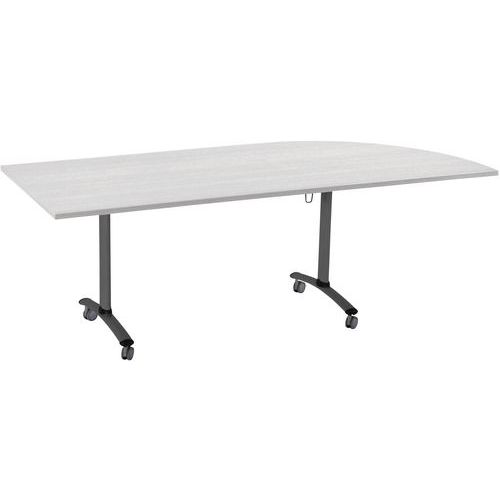Mesa de reuniones con ángulo a la derecha plegable con eje y tablero giratorio que ahorra espacio de almacenamiento. Bloqueo automático del tablero en posición de trabajo (horizontal) y vertical (almacenamiento). Sistema de conexión rápida entre los tableros mediante tornillo de mariposa. Provista de 4 ruedas de Ø 75 mm con freno. Mesa de reuniones con ángulo a la derecha plegable con eje y tablero giratorio que ahorra espacio de almacenamiento Bloqueo automático del tablero en posición de trabajo (horizontal) y vertical (almacenamiento). Sistema de conexión rápida entre los tableros mediante tornillo de mariposa. Provista de 4 ruedas de Ø 75 mm con freno.