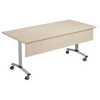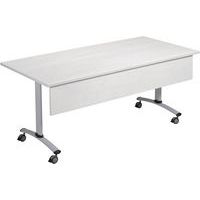 Mesa de reuniones cuadrada plegable con panel trasero eje y tablero giratorio que ahorra espacio de almacenamiento. Bloqueo automático del tablero en posición de trabajo (horizontal) y vertical (almacenamiento). Sistema de conexión rápida entre los tableros mediante tornillo de mariposa. Provista de 4 ruedas de Ø 75 mm con freno. Mesa de reuniones cuadrada plegable con panel trasero eje y tablero giratorio que ahorra espacio de almacenamiento. Bloqueo automático del tablero en posición de trabajo (horizontal) y vertical (almacenamiento). Sistema de conexión rápida entre los tableros mediante tornillo de mariposa. Provista de 4 ruedas de Ø 75 mm con freno. Panel trasero de 25 cm de altura. Cantos de ABS de 2 mm de grosor. Base de metal lacado con epoxi. Fabricado en Francia, se suministra con patas desmontadas.