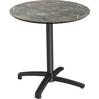 Mesa de bar plegable X CROSS perfecta para los profesionales de la cocina. Cuenta con un tablero plegable y está equipada con una pata central muy estable. Su elegante tablero de HPL es resistente a los arañazos, los rayos UV y la intemperie, lo que la convierte en la aliada indispensable de su terraza. Se utiliza tanto en interiores como en exteriores.