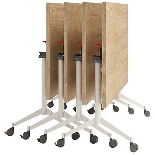 - Mesa de reunión rectangular con sistema de plegado sencillo.