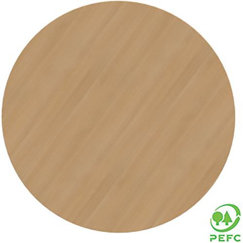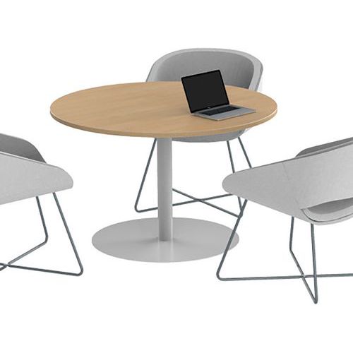Mesa de reuniones redonda con una base central circular. Ideal para espacios de reunión.
