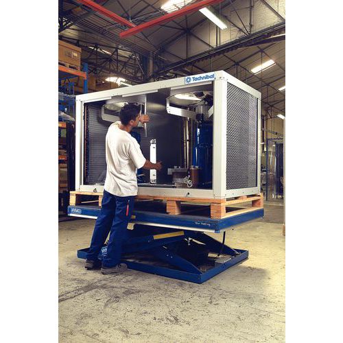 Mesa elevadora ergonómica de calidad: gran fiabilidad y larga vida útil. Cajetín eléctrico instalado bajo la mesa y protegido contra el polvo y las salpicaduras de agua (IP 55). Garantía al cliente : 3 años Carga (kg) : 2000