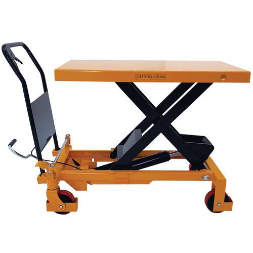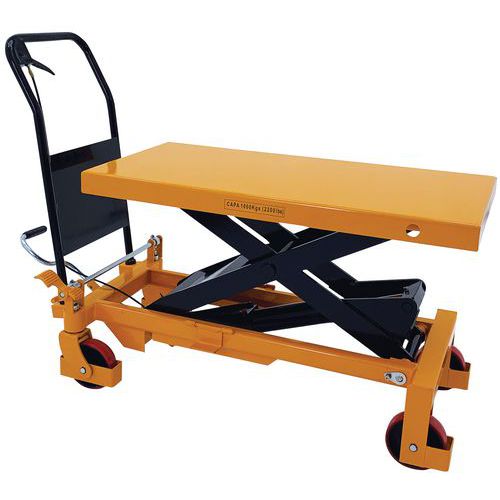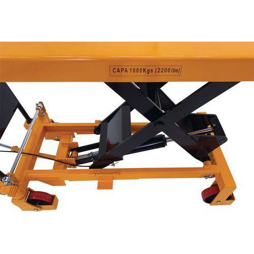 Mesa elevadora móvil, Carga: 1000 kg, Plataforma altura máx.: 1010 mm, Nº impulsos de pedal para alt. máx: 50