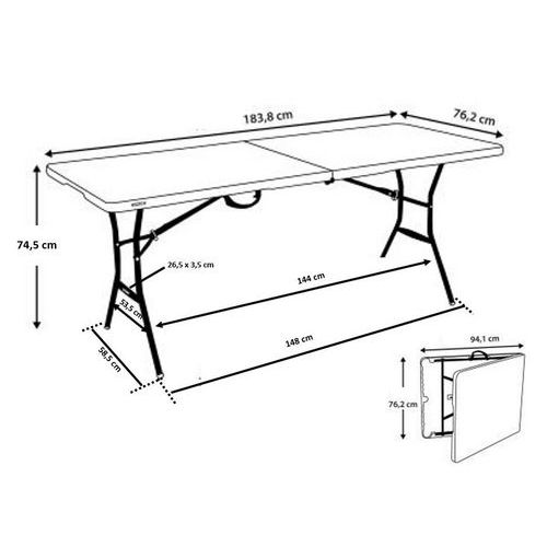 Mesa rectangular plegable negra - 183 x 76 cm - Lifetime