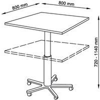 Mesa móvil de altura regulable, Altura: 72 cm, Ancho: 80 cm, Forma: Cuadrado, Material del tablero: Melamina Mesa móvil de altura regulable, Altura: 72 cm, Ancho: 80 cm, Forma: Cuadrado, Material del tablero: Melamina
