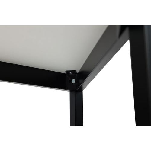 Mesa multiusos Manutan - Anchura 160 cm - Manutan Expert Destaca su robusta construcción de tubo metálico y topes prácticos. Sitúe la mesa al nivel que desee gracias a los pies regulables.