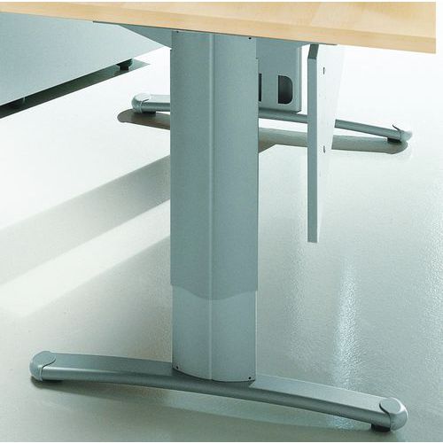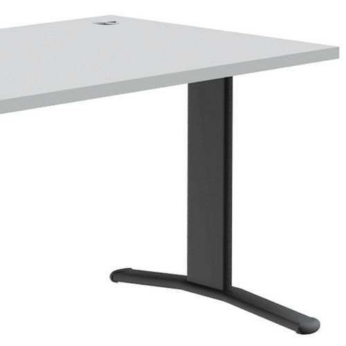 Mesa estética y ergonómica. Adaptada a grandes necesidades de cableado. Paso de cables vertical en el interior de las patas y por los pasacables con tapa del tablero. Tablero con tratamiento antirreflejos y antirrayas. Ideal para teletrabajo