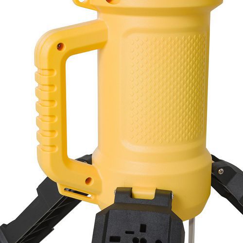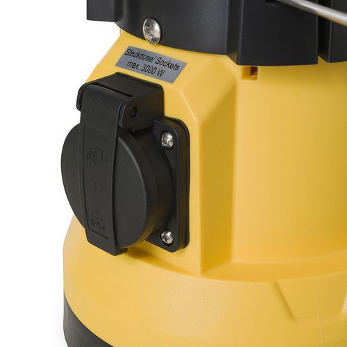 Con sus enormes dimensiones de 156 cm de alto y 85 cm de base, la luminaria LED EXCALIBUR STAK destaca en el lugar de trabajo, se utiliza como luminaria principal para iluminar una estancia o un espacio exterior. Potente: equipada con LED SMD 2835 de alto rendimiento y disipación de calor, la luminaria EXCALIBUR STAK genera 21 000 lúmenes (180 W) de luz en un ángulo de 360°. Versátil: equipada con dos tomas de servicio Schuko de 3000 W. Se utilizan para conectar una herramienta o para conectar otra lámpara en serie con el fin de formar una tira de luces en el lugar de trabajo. Resistente: estructura de policarbonato IK10 (prácticamente irrompible), IP54 (resistencia a los chorros de agua), la luminaria EXCALIBUR ofrece gran resistencia en situaciones de obras, transporte en furgoneta y caídas. Material: policarbonato y aluminio. Equipada con un cable H07RN-F 3x1,5 mm2 de 5 metros con 2 tomas CEE 7/7 (Schuko).