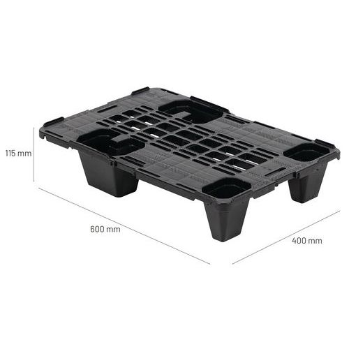 | Nombre del producto | Minipalé ligero apilable reciclado, Carga estática máxi: 600 kg, N.º de entradas: 4, Ancho: 400 mm |