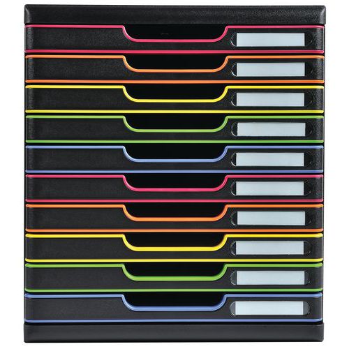 - Despliegue perfecto de los cajones, con tope de seguridad, asa cómoda y portaetiquetas.