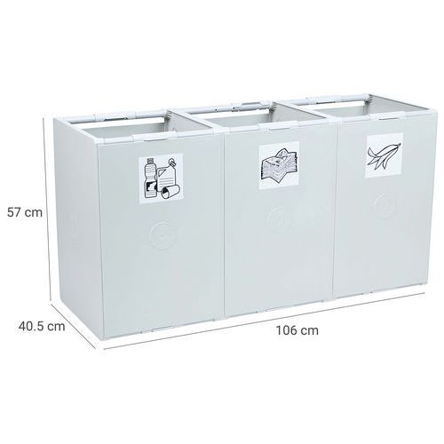 Módulo de reciclaje de plástico adaptado para la recogida selectiva de residuos. Personalice la capacidad para adaptarla a sus necesidades con 1, 2, 3 o 4 módulos, cada uno con una capacidad de 60 L. Optimice la organización de su espacio con una instalación flexible y ampliable. Promueva un entorno limpio y profesional con un diseño moderno y discreto. Facilite la clasificación con los pictogramas autoadhesivos suministrados para cada módulo.