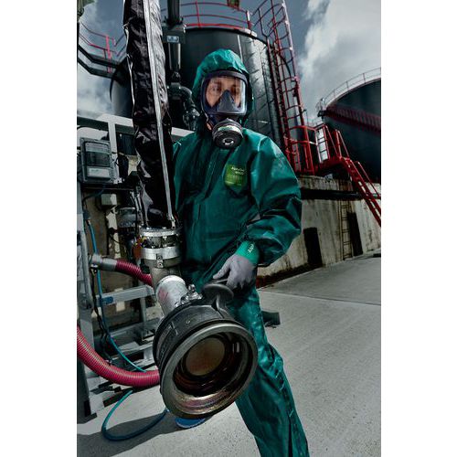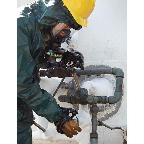 El AlphaTec® 4000 Ultrasonically Welded & Taped es un robusto traje de protección química, sometido a pruebas de permeabilidad para resistir más de 200 riesgos químicos, incluidos los agentes de guerra química. . Este traje de protección total también cuenta con puños dobles y un sistema de doble cremallera, lo que mejora aún más su barrera defensiva. . Gracias a sus costuras pegadas y soldadas, este traje de protección ofrece a los usuarios una barrera sólida y fiable contra toda una serie de peligros. . Los puños interiores de punto y el tejido interior de estilo textil facilitan la aceptación del usuario. . La capucha, la cintura, los puños y los tobillos elásticos de dos piezas simplifican el proceso de ponerse y quitarse el traje, para una protección personal fácil de llevar.
