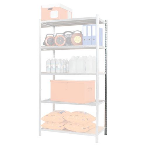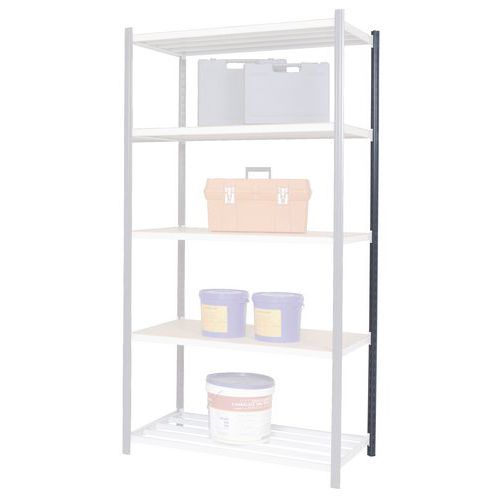 Montante adicional para utilizar combinado con la estantería Combi-Fix. Prácticas perforaciones para adaptar la altura de las baldas. Con pies de plástico para garantizar la estabilidad de la estantería. RAL gris: 7024.